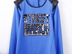 女士春秋款长袖PU领 烫钻T恤衫